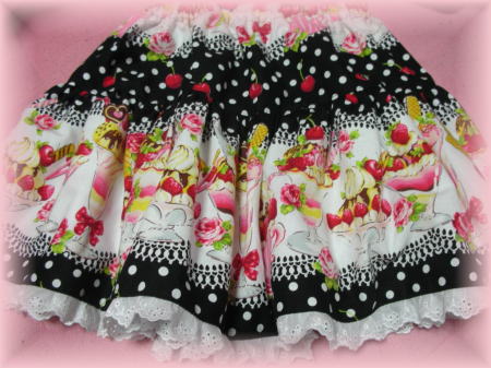 前に作ったドクロ柄のは3段フリルだったんですが、時間的に無理なので1段切り替えです。