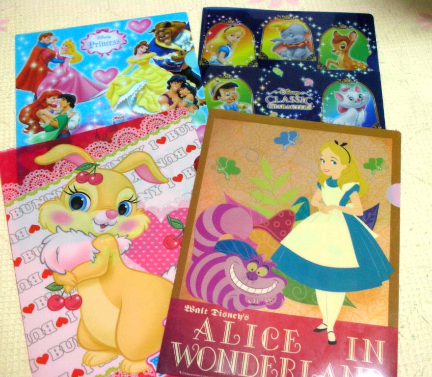 友達と買い物に行きました。。 クリアファイルを買うと言ったので、探していたら、ディズニーキャラのを発見!! 私も保育園のたよりなんかを入れようと思って見ていると、どれも可愛い♪ そーこーしてると、子供達も見だして結局4枚も買ってしまった(;^ω^) カリンがプリンセス ダンナちゃんに紺のやつ。。 私が下2つ(笑) 全部で390円なのでまぁいいかぁ~