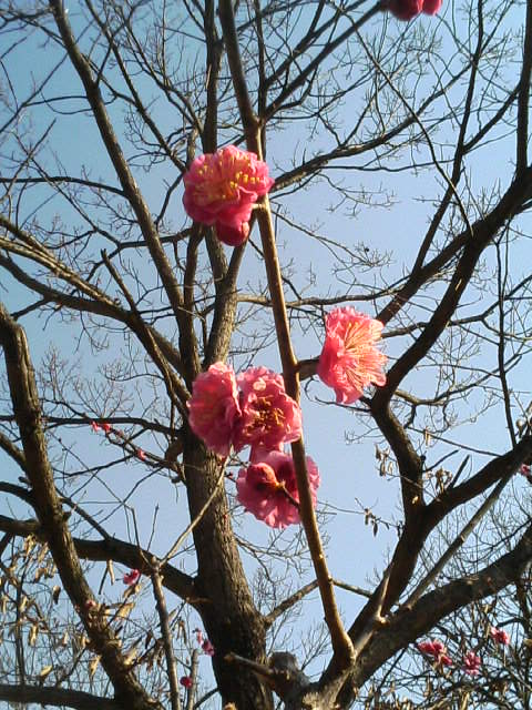 昨日の日曜日、散歩をかねて公園に行ったら、梅が咲いていた(-0-;)